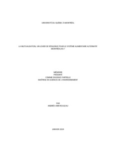 « La mutualisation, un levier de résilience pour le système alimentaire alternatif montréalais? » Mémoire.