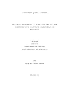 Lukusa, Luck Matungulu (2022). « Investigation sur les calculs de taux d'incidence à l'aide d'approches issues de l'analyse de l'historique des événements » Mémoire. Montréal (Québec, Canada), Université du Québec à Montréal, Maîtrise en mathématiques.