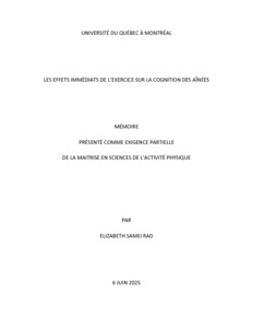 « Les effets immédiats de l'exercice sur la cognition des aînées » Mémoire.