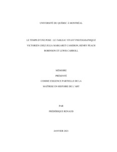 « Le temps d'une pose : le tableau vivant photographique victorien chez Julia Margaret Cameron, Heny Peach Robinson et Lewis Carroll » Mémoire.