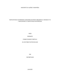 « Participation à différentes catégories de sports organisés à l'enfance et à l'adolescence et adaptation psychosociale » Thèse.