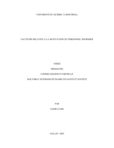 Motivation au travail / Motivation intrinsèque / Théorie de l'autodétermination / Satisfaction au travail / Personnel infirmier / Infirmières / Québec (Province) |