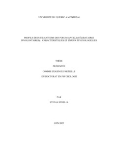 Contexte. Les forums incels (« involuntary celibates ») sont des espaces numériques où des hommes éprouvant une difficulté à établir des relations sexuelles partagent des discours misogynes et fatalistes, incluant des idéations suicidaires. Une lacune existe dans la littérature quant aux caractéristiques psychologiques et sociales des utilisateurs de forums incels, ainsi qu’aux facteurs associés à leur expression de commentaires suicidaires. Objectifs. Ce projet de recherche doctorale vise à atteindre les objectifs suivants : 1) identifier les caractéristiques psychologiques et sociales des utilisateurs des forums incels ; 2) déterminer les principaux centres d'intérêt des utilisateurs afin a) d’identifier de possibles sous-groupes d’incels, et b) de distinguer ce qui a précédé et suivi leur participation à un forum incel; 3) analyser les thèmes dans les publications d’idéations suicidaires pour comprendre les sources de leur détresse. Méthodes. Étude 1 : Une revue initiale de la littérature a colligé les résultats de 59 études sur les caractéristiques psychologiques et sociales des personnes s’identifiant comme incels. Étude 2 : Un algorithme d'analyses de réseaux (« Ising network model ») et de détection de communautés (« Walktrap ») a été employé pour identifier les principaux centres d'intérêt de 116 266 incels (selon leur activité sur les forums), l’existence de sous-groupes, et pour évaluer les intérêts qui ont précédé ou suivi leur participation à un forum incel. Étude 3 : Parmi les participants de l’Étude 2, une analyse qualitative a identifié les thématiques qui émergent des commentaires suicidaires. Résultats. Objectif 1 : Selon la littérature recensée, outre les difficultés au niveau romantique et sexuel, les utilisateurs des forums incels sont de jeunes hommes présentant des enjeux de santé mentale et d’idéations suicidaires, de l’isolement, un historique d’intimidation, une prévalence d’autisme, une image corporelle négative, de la timidité, de faibles compétences sociales, ainsi qu’une faible estime de soi. Les incels semblent être un sous-groupe d’adultes sexuellement inexpérimentés faisant le choix d’adhérer à une idéologie misogyne et fataliste pour donner sens à leurs difficultés et obtenir du soutien. Objectif 2 : Les résultats suggèrent l’existence de sous-groupes d’intérêts indicatifs de l’existence d’une hétérogénéité de profils d’incels. La majorité des utilisateurs démontrent un intérêt pour des forums aux thématiques relationnels et de santé mentale. Les contributions aux forums de santé mentale précèdent ou coïncident avec leur participation à un forum incel. Objectif 3 : Six thèmes liés à leurs idéations suicidaires émergent : l’isolement social, la solitude, la frustration liée au célibat involontaire, des préoccupations au niveau de l’apparence physique, des enjeux de santé mentale, des problèmes familiaux, et un sentiment de dévalorisation. Conclusion. Les forums incels attirent de jeunes hommes célibataires confrontés à divers enjeux personnels et qui n’arrivent pas à incarner un idéal de masculinité prescrit. Les forums offrent une communauté d’appartenance et un narratif donnant sens à leurs difficultés, aux dépens des femmes et du féminisme, et de leur santé mentale. Le partage de commentaires défaitistes et d’idéations suicidaires est encouragé par les pairs. Ceci décourage l’acceptation ou la résolution de leurs problèmes, renforçant leur victimisation et leur sentiment de désespoir.