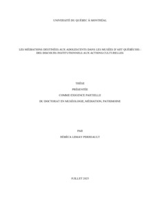 « Les médiations destinées aux adolescents dans les musées d'art québécois : des discours institutionnels aux actions culturelles » Thèse.