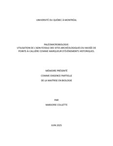 « Paléomicrobiologie : utilisation de l'ADN fossile des sites archéologiques du musée de Pointe-à-Callière comme marqueur d'événements historiques » Mémoire.