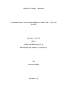 « La transition durable, vecteur de résilience postcatastrophe : le cas de Lac-Mégantic » Mémoire.
