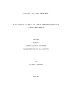 « L'influence du voyage et des comportements de voyage sur le bien-être subjectif » Mémoire.