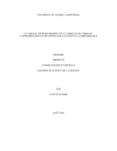 « Le tableau de bord prospectif à l'épreuve du terrain : l'appropriation et ses effets sur la santé et la performance » Mémoire.