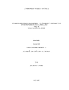 « Les micro-agressions quotidiennes : un épuisement rhizomatique et ses représentations littéraires ; suivi de Bonne soirée, ma belle » Mémoire.
