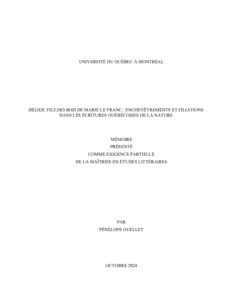 « Hélier, fils des bois de Marie Le Franc : enchevêtrements et filiations dans les écritures québécoises de la nature » Mémoire.