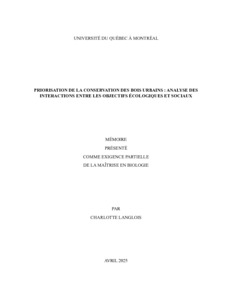 « Priorisation de la conservation des bois urbains : analyse des interactions entre les objectifs écologiques et sociaux » Mémoire.
