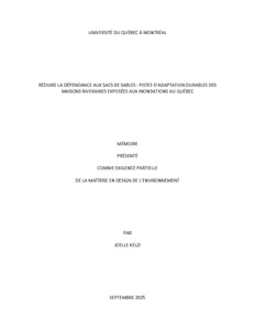 « Réduire la dépendance aux sacs de sables : pistes d'adaptation durables des maisons riveraines exposées aux inondations au Québec » Mémoire.