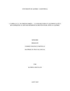 « « J'appelle ça, ma prison dorée » : le non-recours et les difficultés à revendiquer au sein des résidences privées pour aînés au Québec » Mémoire.