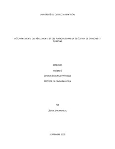 Duchaineau, Cédric (2025). « Détournements des règlements et des pratiques dans la 5e édition de donjons et dragons » Mémoire. Montréal (Québec), Université du Québec à Montréal, Maîtrise en communication.