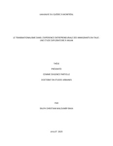 Un des effets de la mondialisation consiste en l’augmentation des migrations internationales. De ce fait, les migrants internationaux tissent des liens de diverses natures soit entre leur pays d’origine et leur pays d’accueil, soit entre leur pays d’origine, leur pays d’accueil et des pays tiers. L’on parle alors, selon les cas, de transnationalisme bipolaire ou de transnationalisme multipolaire, dont les pratiques ont été simplifiées grâce aux avancées en matière de technologies de l’information et de la communication des dernières décennies. Parmi les liens que les immigrants entretiennent, ceux de nature économique revêtent une importance particulière. En effet, ceux-ci, non seulement contribuent à donner lieu à l’entrepreneuriat à l’oeuvre desdits migrants, mais ces entreprises naissent précisément à l’intérieur de dynamismes transnationaux. Il devient alors pertinent de s’interroger sur le rôle du transnationalisme dans l’expérience entrepreneuriale des immigrants. C’est l’objectif de cette thèse. La thèse vise à comprendre comment les entrepreneurs transnationaux identifient, créent et saisissent les opportunités d'affaires. Pour ce faire, un échantillon de dix entrepreneurs immigrants transnationaux a été étudié à Milan, chef-lieu de la région de la Lombardie et capitale économique de l'Italie qui, comme telle, contient un éventail important d’entrepreneurs immigrants. Le choix d’effectuer la recherche en Italie s’explique par le besoin d’étudier ce phénomène dans un nouveau pays d’immigration, compte tenu du fait que la plupart des recherches sur ce thème se déroule dans les pays traditionnels d’immigration. Compte tenu de la complexité du phénomène de l’entrepreneuriat transnational immigrant, une approche de recherche qualitative et exploratoire, voire ethnographique, a été adoptée. Cela nous a permis, grâce à des entrevues semi-dirigées, d’approfondir les aspects liés aux caractéristiques contextuelles et aux ressources de l’entrepreneur. Dans ce contexte, nous avons adopté l’approche de l’étude de cas, afin de comparer transversalement plusieurs trajectoires entrepreneuriales et mieux saisir les dynamiques communes du phénomène. D’autre part, nous avons brossé, à partir des données disponibles auprès des chambres de commerce d'industrie, d'artisanat et d'agriculture, le portrait général de l’entrepreneuriat transnational immigrant. Cela nous a permis d’avoir un portrait sur l’encastrement des entrepreneurs dans les différentes structures socioéconomiques de la ville de Milan. La prise en considération à la fois des caractéristiques personnelles de l’entrepreneur et des facteurs structurels et contextuels a donné lieu à une proposition conceptuelle qui analyse le phénomène de l’entrepreneuriat transnational des immigrants dans sa globalité et permet d’en saisir les aspects les plus pertinents. Cette approche intégrative a mis en évidence non seulement le rôle de ces deux macro-facteurs, mais aussi leur poids dans l’identification et la saisie des opportunités commerciales. Ainsi, si les caractéristiques individuelles et les conditions contextuelles pris séparément ont un certain poids dans l’analyse et la compréhension de l’entrepreneuriat transnational des immigrants, la thèse conclut que ce n’est que la combinaison des deux sphères qui donne lieu à la création, à l’identification et à la saisie desdites opportunités. Dans ce sens, il y a complémentarité entre les caractéristiques individuelles, l’encastrement relationnel et l’encastrement structurel. La thèse soutient alors que le transnationalisme et ses dimensions influencent l’expérience et les activités entrepreneuriales des immigrants non pas de manière uniforme ou homogène mais hétérogène, c'est-à-dire sous différentes formes et à différents degrés. La thèse conclut donc que l’entrepreneuriat transnational des immigrants ne doit pas être considéré comme un phénomène homogène, dimension plus en lien avec sa définition conceptuelle, mais plutôt complexe et hétérogène.