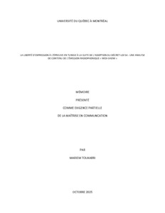 Ce mémoire s’intéresse aux préoccupations soulevées par l’évolution de la société tunisienne, en particulier par l’adoption du décret-loi 54 sur la lutte contre la cybercriminalité et la propagation de fausses nouvelles. Ce décret a clairement entrainé des répercussions sur les libertés. Notre question est de comprendre comment la liberté d’expression est discutée dans une émission de radio qui reprend les médias tunisiens. L’émission radiophonique « Midi-show » est un lieu de discussion entre journalistes et spécialistes des sujets nationaux et internationaux. Entre le 19 septembre 2022 et le 21 septembre 2023, nous avons pu recueillir 34 émissions où la question des libertés, en général, et du décret-loi 54, en particulier, était abordée. Nos résultats montrent que les gens ont tendance à confondre la liberté d’expression avec d’autres droits, tels que la liberté de la presse et de la pensée, ce qui entraine des effets négatifs. Les journalistes ne travaillent pas dans des conditions appropriées, puisqu’ils peuvent perdre leur emploi en vertu du décret-loi 54.