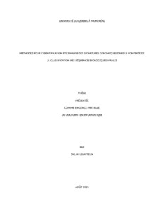 « Méthodes pour l'identification et l'analyse des signatures génomiques dans le contexte de la classification des séquences biologiques virales » Thèse.