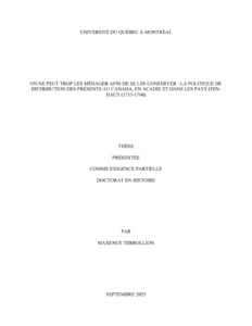 « On ne peut trop les ménager afin de se les conserver : la politique de distribution des présents au Canada, en Acadie et dans les Pays d'En-Haut (1713-1760) » Thèse.
