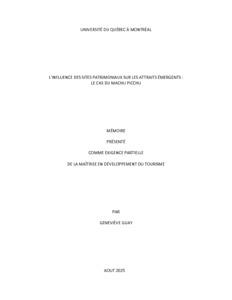 « L'influence des sites patrimoniaux sur les attraits émergents : Le cas du Machu Picchu » Mémoire.