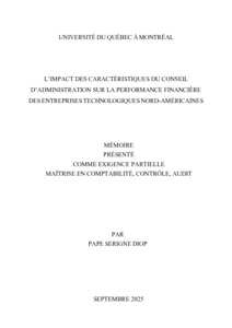 Diop, Pape Serigne (2025). « L'impact des caractéristiques du conseil d'administration sur la performance financière des entreprises technologiques nord-américaines » Mémoire. Montréal (Québec), Université du Québec à Montréal, Maîtrise en comptabilité, contrôle, audit.