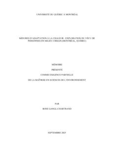 « Mesures d'adaptation à la chaleur : exploration du vécu de personnes en milieu urbain (Montréal, Québec) » Mémoire.