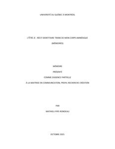 « L'Être Je : récit identitaire trans de mon corps amnésique (mémoires) » Mémoire.