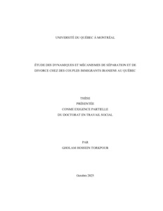 « Étude des dynamiques et mécanismes de séparation et de divorce chez des couples immigrants iraniens au Québec » Thèse.