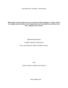 Koulibaly, Karidja Tchetchanwa (2025). « Réflexion sur les obstacles à l'effectivité du droit à l'éducation au Québec des étudiant.es internationaux en provenance des pays de l'Afrique de l'Ouest » Mémoire. Montréal (Québec), Université du Québec à Montréal, Maîtrise en droit.
