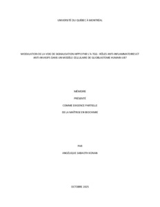 Konan, Angélique Sabaoth (2025). « Modulation de la voie de signalisation Hippo par l'a-TGG : rôles anti-inflammatoires et anti-invasifs dans un modèle cellulaire de glioblastome humain U87 » Mémoire. Montréal (Québec), Université du Québec à Montréal, Maîtrise en biochimie.