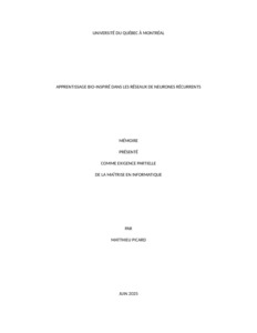 « Apprentissage bio-inspiré dans les réseaux de neurones récurrents » Mémoire.