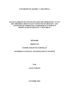 « Les dynamiques de stigmatisation des personnes ayant des troubles mentaux en contexte d'urgence : les attitudes du personnel infirmier d'un service hospitalier d'urgence à Montréal » Mémoire.