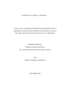 « L'impact de la méthode de formation des binômes sur la performance écrite des apprenants de français langue seconde lors d'une tâche d'écriture collaborative » Mémoire.