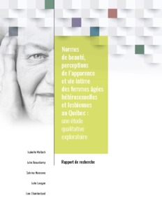 Wallach, Isabelle; Beauchamp, Julie; Maiorano, Sabrina; Lavigne, Julie et Chamberland, Line (2019). Normes de beauté, perceptions de l’apparence et vie intime des femmes âgées hétérosexuelles et lesbiennes au Québec : une étude qualitative exploratoire. Université du Québec à Montréal, Chaire de recherche sur la diversité sexuelle et la pluralité des genres.