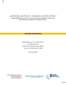 Maiorano, Sabrina et Chamberland, Line (2018). L'astérisk, un projet jeunesse à développer? L'empowerment en action : bilan d'un espace alternatif de gestion participative des groupes jeunesse LGBTQ+. Université du Québec à Montréal, Chaire de recherche sur la diversité sexuelle et la pluralité des genres.