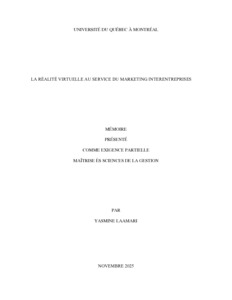 Laamari, Yasmine (2025). « La réalité virtuelle au service du marketing interentreprises » Mémoire. Montréal (Québec, Canada), Université du Québec à Montréal, Maîtrise ès sciences de la gestion.