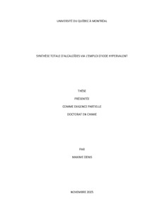 « Synthèse totale d'alcaloïdes via l'emploi d'iode hypervalent » Thèse.