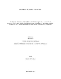 « Pratiques enseignantes d'éducation physique et à la santé en contexte de plein air accessibles financièrement et matériellement dans des écoles secondaires québécoises : étude de quatre cas » Mémoire.