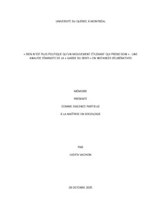 « « Rien n'est plus politique qu'un mouvement étudiant qui prend soin » : une analyse féministe de la « garde du senti » en instances délibératives » Mémoire.