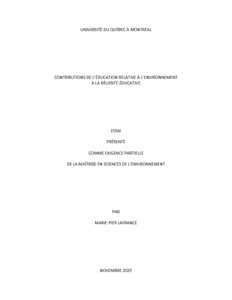 « Contributions de l'éducation relative à l'environnement à la réussite éducative » Essai.