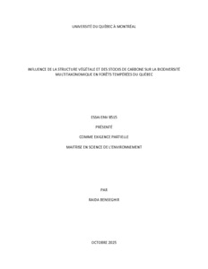 « Influence de la structure végétale et des stocks de carbone sur la biodiversité multitaxonomique en forêts tempérées du Québec » Essai.