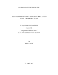 « L'institution frontalière et l'hospitalité démocratique : au-delà de la pensée d'État » Travail dirigé.
