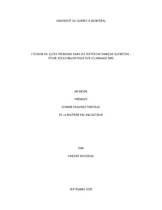 « L'élision du <l> des pronoms dans les textos en français québécois : étude sociolinguistique sur le langage SMS » Mémoire.
