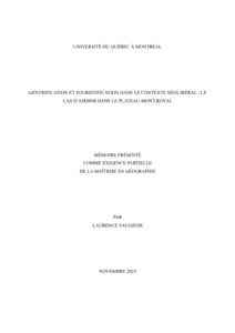 « Gentrification et touristification dans le contexte néolibéral : le cas d'Airbnb dans le Plateau-Mont-Royal » Mémoire.