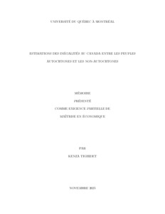 « Estimations des inégalités au Canada entre les peuples autochtones et les non-autochtones » Mémoire.