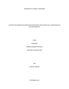 « Les effets des groupes de rédaction scientifique structurés sur la santé mentale des doctorant·es » Thèse.