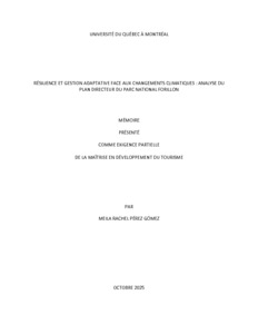Pérez Gómez, Meila Rachel (2025). « Résilience et gestion adaptative face aux changements climatiques : analyse du plan directeur du Parc national Forillon » Mémoire. Montréal (Québec, Canada), Université du Québec à Montréal, Maîtrise en développement du tourisme.
