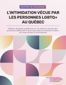 Blais, Martin; Dion, Fred L. et Gervais, Mathieu-Joël (2024). L’intimidation vécue par les personnes LGBTQ+ au Québec : rapport de l’étude québécoise sur les relations sociales des personnes LGBTQ+ de 14 ans et plus dans un contexte scolaire, de travail et dans la communauté. Université du Québec à Montréal, Chaire de recherche sur la diversité sexuelle et la pluralité des genres.