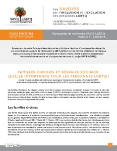 Doucet, Sophie et Chamberland, Line (2018). Familles choisies et réseaux sociaux : quelle importance pour les personnes LGBTQ ?. Université du Québec à Montréal, Chaire de recherche sur la diversité sexuelle et la pluralité des genres.