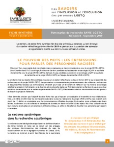 | Mots-clés ou Sujets: | personnes racisées, racisation, vocabulaire, diversité ethnoculturelle, racisme systémique, SAVIE-LGBTQ |