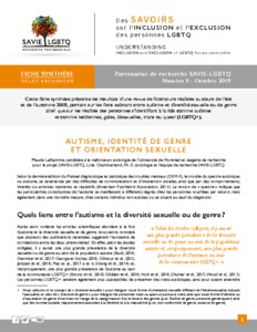 Laflamme, Maude et Chamberland, Line (2019). Autisme, identité de genre et orientation sexuelle. Université du Québec à Montréal, Chaire de recherche sur la diversité sexuelle et la pluralité des genres.